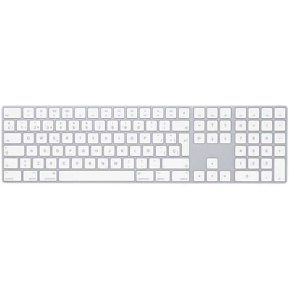 Magic Keyboard with Numeric Keypad features an extended layout, with document navigation controls for quick scrolling and full-size arrow keys for gaming. A scissor mechanism beneath each key allows for increased stability, while optimized key travel and a low profile provide a comfortable and precise typing experience. The numeric keypad is also great for spreadsheets and finance applications. And the built-in, rechargeable battery is incredibly long-lasting, powering your keyboard for about a month or more between charges.