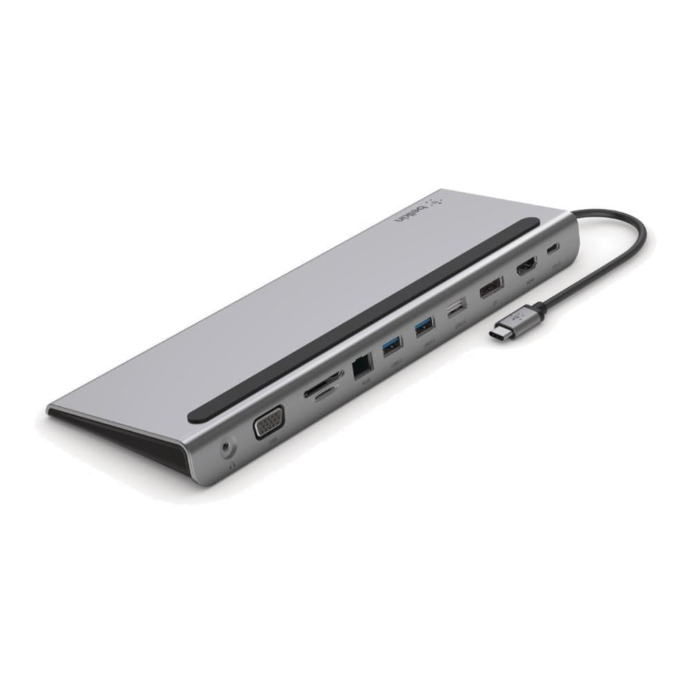 Turn your USB-C laptop into the ultimate workstation with the Belkin USB-C 11-in-1 Multiport Dock. This all-in-one solution gives you access to ports that newer laptops have eliminated in the recent years, allowing you to connect to monitors, SD cards, thumb drives, and more through its USB-C port. It supports pass-through charging up to 100W, so you don’t have to choose between port expansion and power. This docking station gives you up to 5 Gbps of bandwidth between connected devices and your laptop while supporting high-definition display resolutions up to 4K through HDMI, DisplayPort, and VGA video ports. Plus, with its Gigabit Ethernet port, you’ll always have a safe and secure internet connection.
