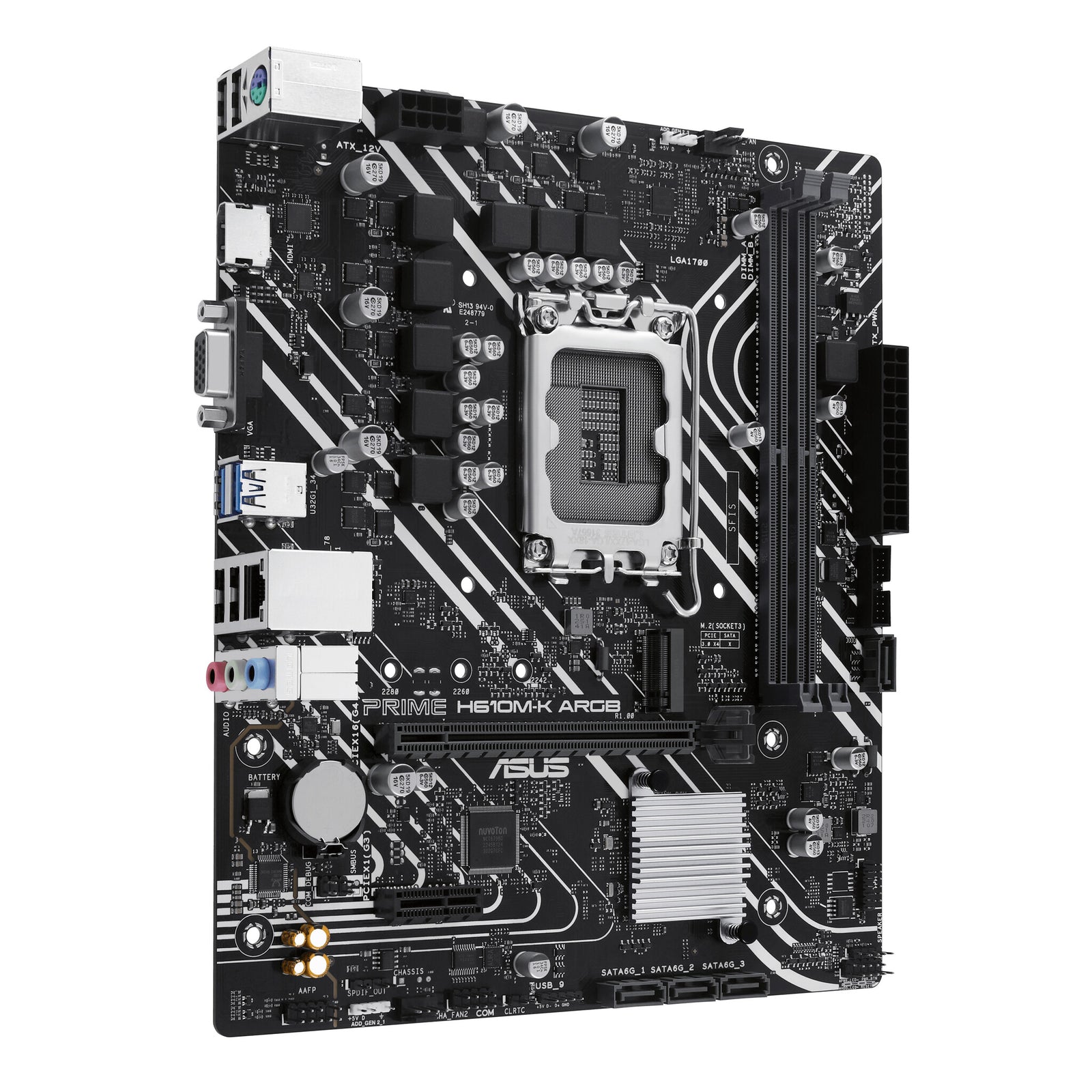 PRIME H610M-K ARGB offers one M.2 slot that supports data-transfer speeds of up to 32 Gbps via PCIe 3.0, enabling quicker boot-up and app load times with OS or application drives.