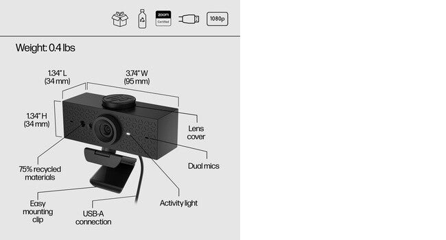 HP is committed to reducing plastic in landfills and oceans. This webcam contains 71% post-consumer recycled plastic and 100% recyclable packaging.