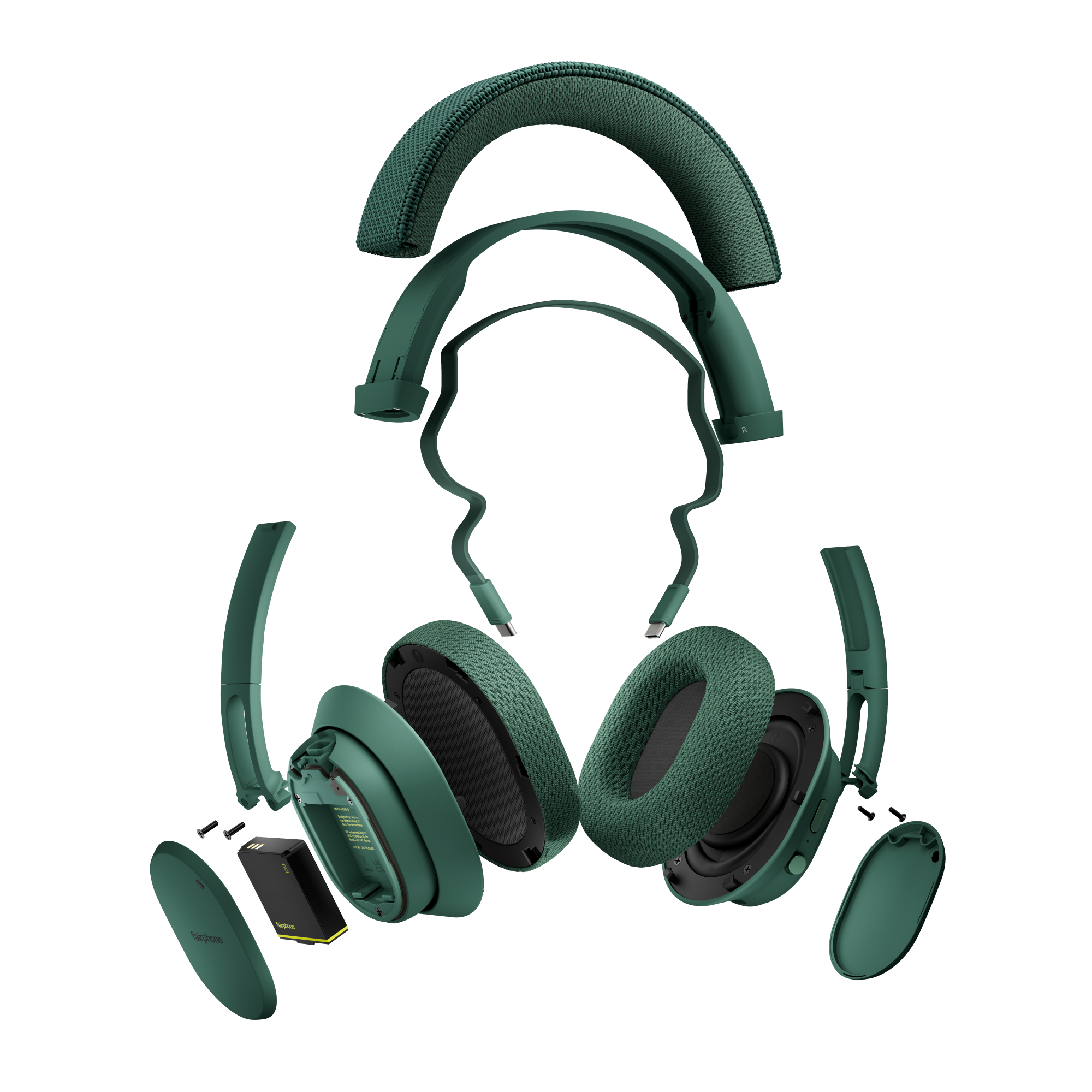 Zero glue, Simple screws. You can take the Fairbuds XL apart in minutes with a single screwdriver, and replace up to nine spare parts if you need to.